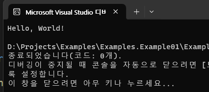 [▶ Examples.Example01] 버튼을 눌러 실행해 봅시다.