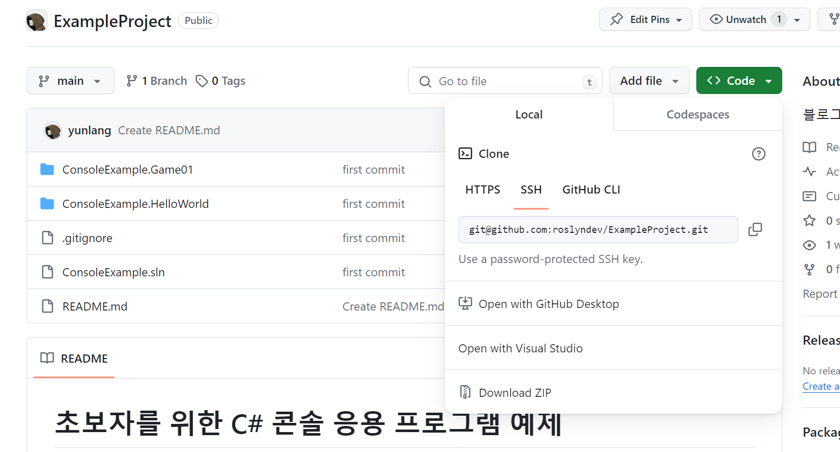 GitHub - roslyndev/ExampleProject: 블로그 예제 코드