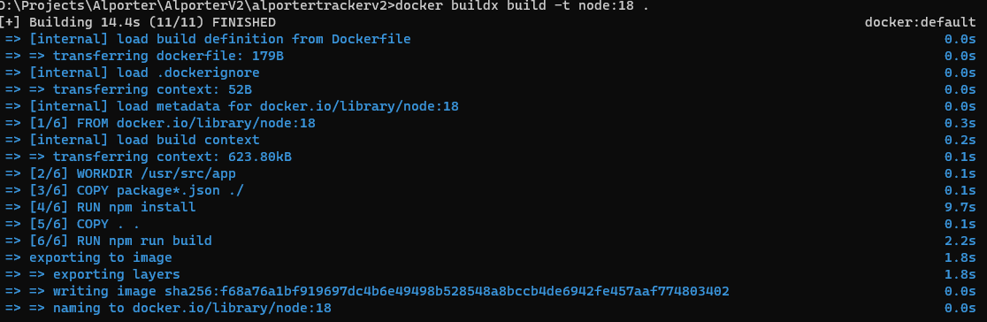 buildx로 build 하면서 타겟으로 node:18 이미지를 선택했다.