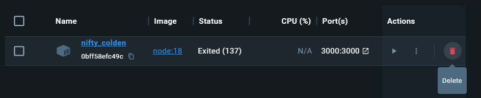 또는 Docker Desktop에서 휴지통 아이콘을 눌러 삭제할 수 있다.