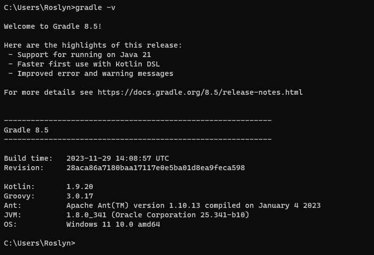 (5) cmd 창을 열어 gradle -v 명령어로 설치여부를 확인한다.
