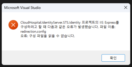 CloudHospital.IdentityServer.STS.Identity 프로젝트의 IIS Express를 구성하려고 할 때 다음과 같은 오류가 발생했습니다. 파일 이름: redirection.config