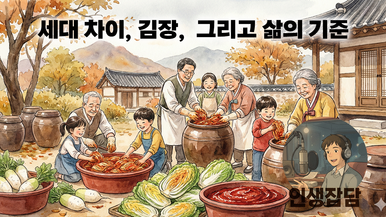안녕하세요, 여러분. 인생의 소소한 이야기들을 나누는 "인생잡담"입니다. 오늘 함께 나눌 이야기는 바로 “[세대 차이, 김장, 그리고 삶의 기준]”이라는 제목으로, 세대 간의 삶의 기준이 달라도 서로를 존중하며 살아가는 것에 대한 저의 경험과 생각을 담아보려고 합니다. 저희 집은 희한하게 김장철만 되면 묘한 긴장감이 감돌아요. 어머니 손이 어찌나 크신지, 저희 다섯 식구 먹을 김치를 배추 500포기씩 담그셨다니까요. 지금 생각해보면 정말 어마어마한 양이었죠. 어머니는 당신 형제자매들은 물론이고, 아는 사람들까지 김치 넉넉히 담가서 나눠줘야 직성이 풀리셨거든요. 마치 큰 행사처럼 여기는 분위기였어요. 세월이 흐르면서 어머니도 점점 힘에 부치셨는지, 500포기 하던 김장이 200포기로 줄고, 그다음엔 100..