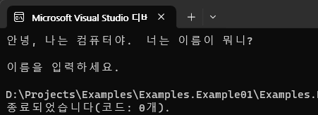 Console.WriteLine("이름을 입력하세요.");
