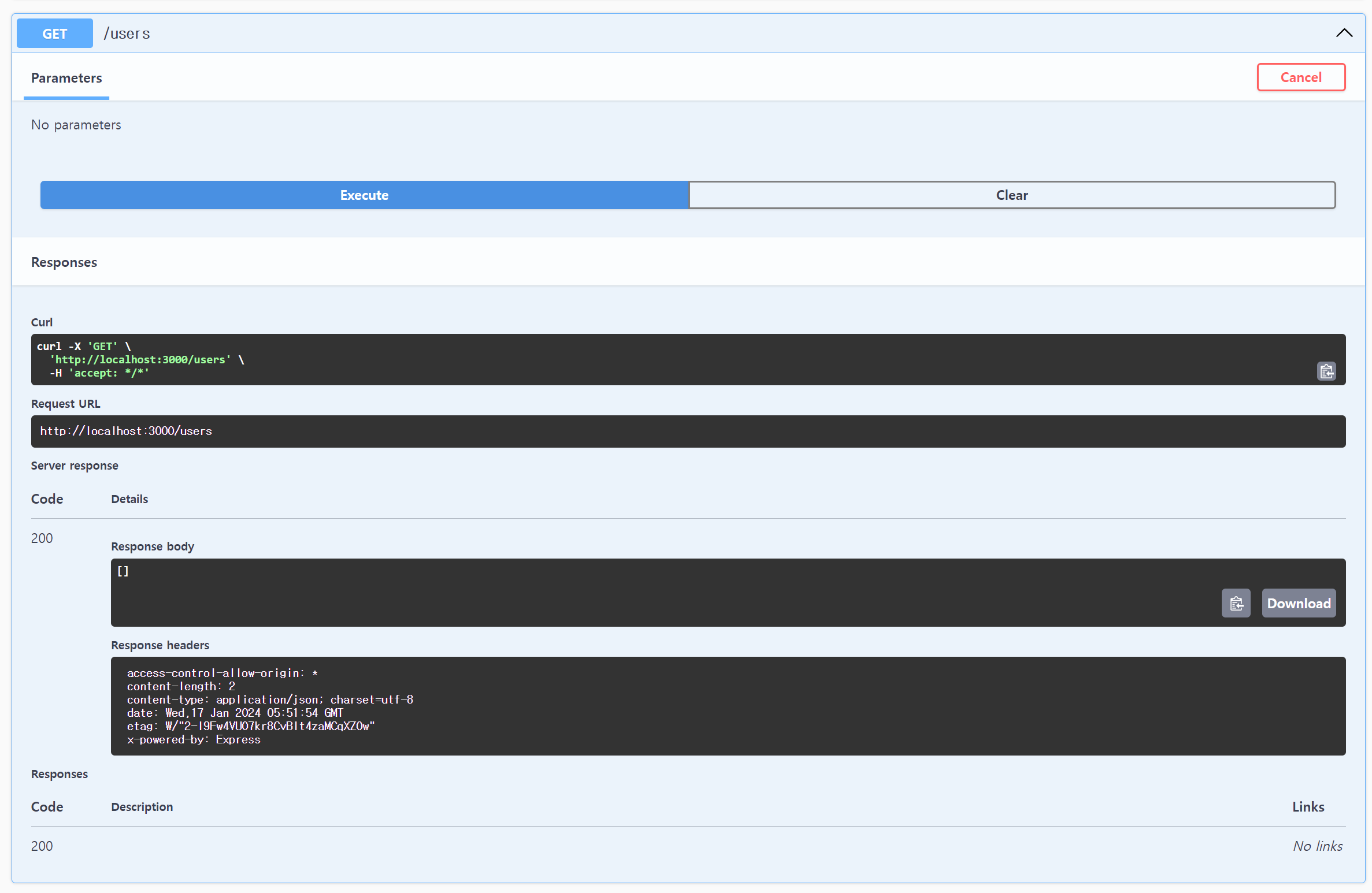 이제 서버를 실행시켜 보면, Swagger에 user 테이블을 조회하는 API가 추가된 것을 볼 수 있다.